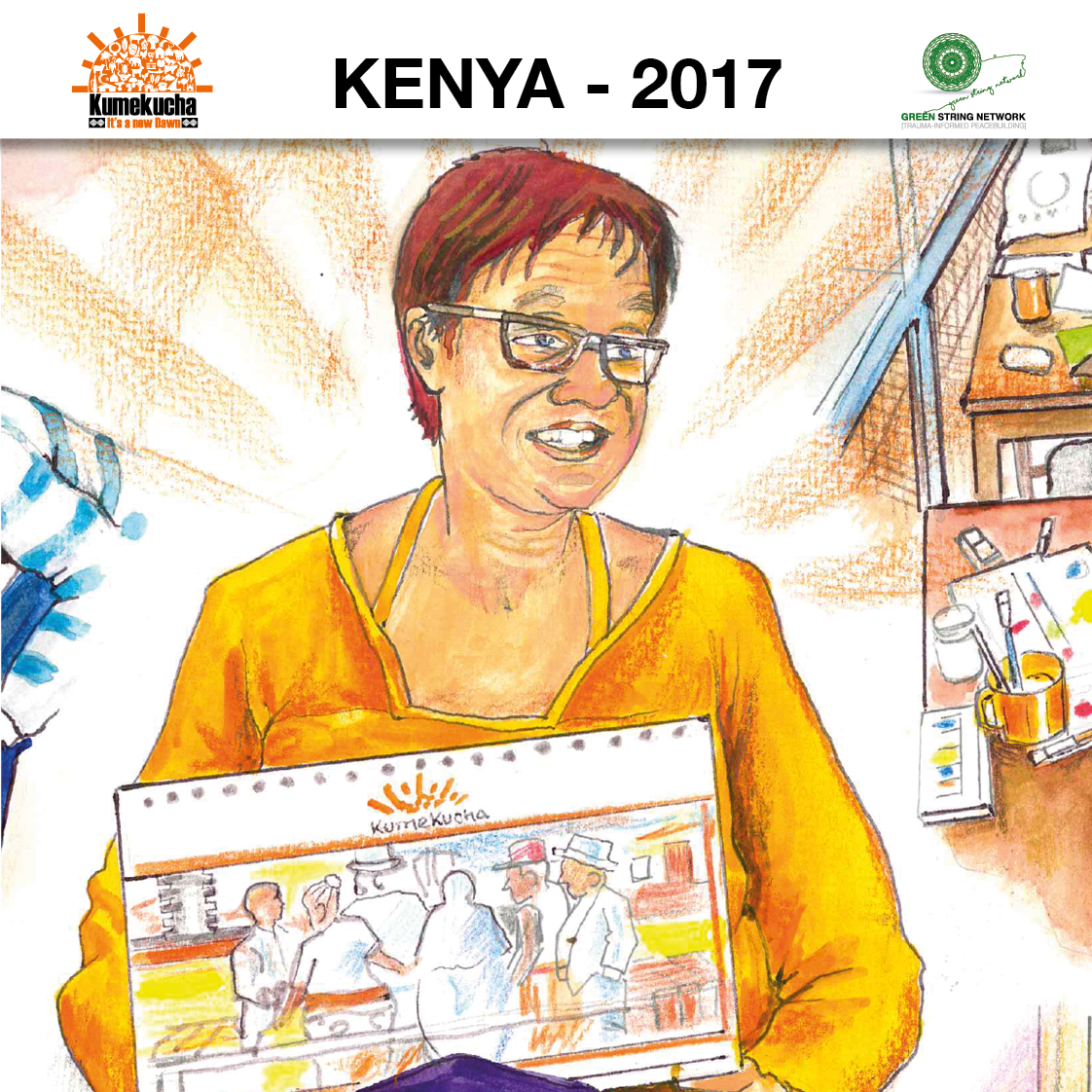 Kumekucha Quest uses music, storytelling, and the arts as mediums for emotional regulation and for helping people cope with emotional distress. The design of the program logo was done by young people, including the artist who was part of the design and adaptation workshop.